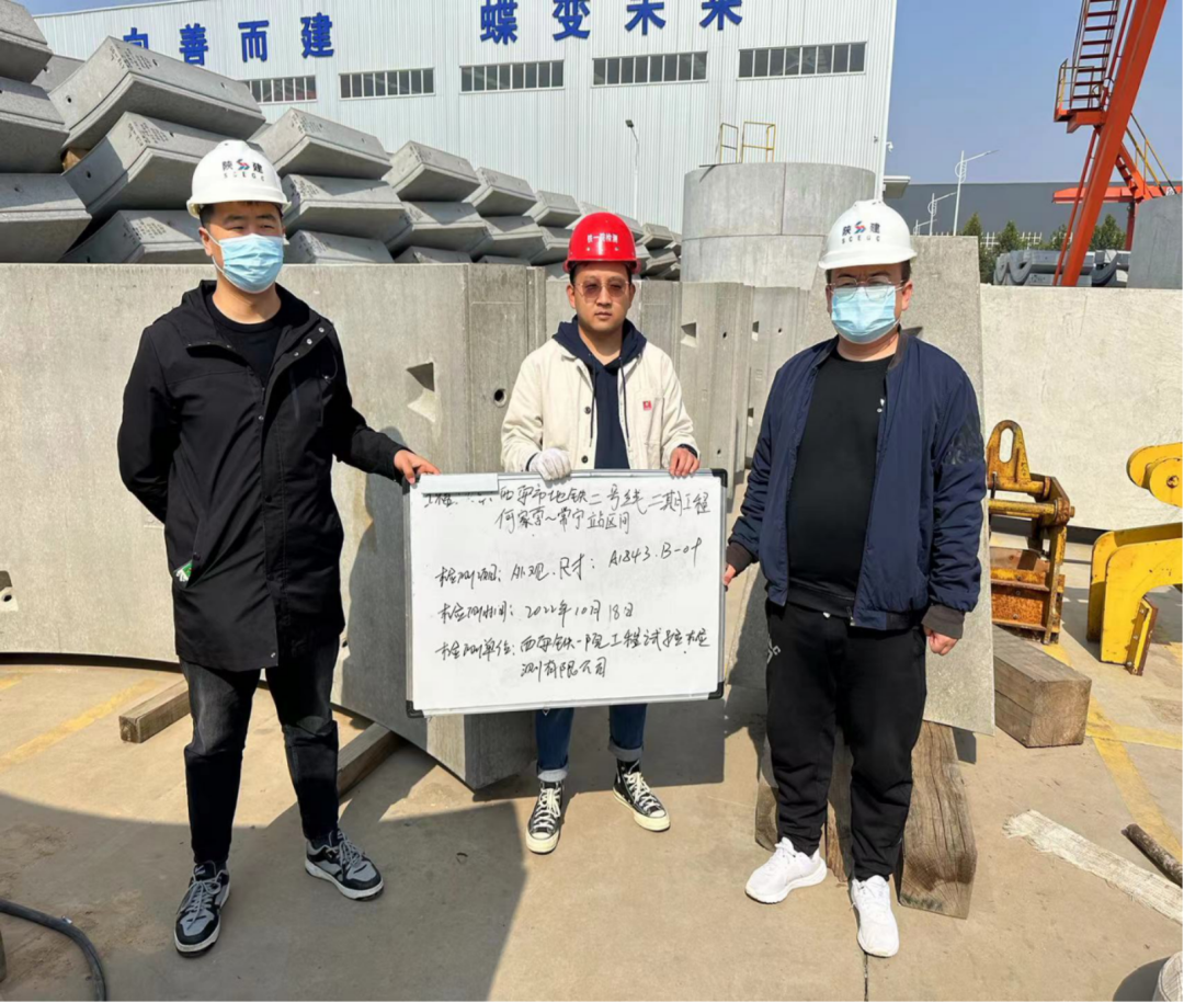 10月19日,由西安鐵一院工程試驗(yàn)檢測(cè)有限公司與中資工程管理咨詢(xún)有限公司組成檢測(cè)小組到陜建新型建材公司現(xiàn)場(chǎng)對(duì)地鐵二號(hào)線地鐵管片產(chǎn)品進(jìn)行最終批次現(xiàn)場(chǎng)檢測(cè),公司市政車(chē)間、實(shí)驗(yàn)室相關(guān)人員全程陪同。
