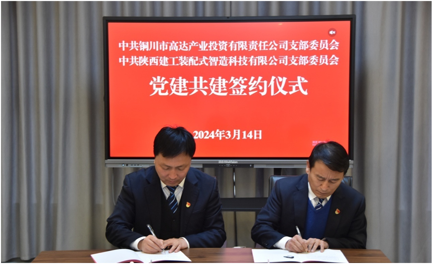 為推進(jìn)黨建工作走深走實(shí),促進(jìn)企業(yè)交流合作,2024年3月14日下午,陜建裝配智造公司黨支部與受邀前來的銅川市高達(dá)產(chǎn)業(yè)投資公司黨支部舉行黨建共建簽約儀式,陜建裝配智造公司黨支部書記、董事長(zhǎng)王輝,銅川市高達(dá)產(chǎn)業(yè)投資公司黨支部書記、執(zhí)行董事、總經(jīng)理田軍建出席儀式并講話,雙方黨支部全體黨員參加。