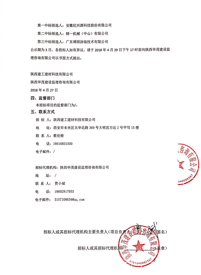 陜西建工建材科技有限公司涂裝板生產(chǎn)線項(xiàng)目設(shè)備采購(gòu)中標(biāo)公示