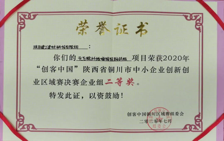 近期,陜建建材科技公司在2020年“創(chuàng)客中國”陜西省銅川市中小企業(yè)創(chuàng)新創(chuàng)業(yè)區(qū)域賽企業(yè)組決賽中獲得了二等獎(jiǎng)的佳績。