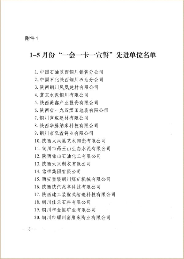 此次公司榮獲銅川市1-5月份“一會一卡一宣誓”先進單位,公司員工吳進軍榮獲“一會一卡一宣誓”先進個人稱號,是對公司安全生產(chǎn)工作的充分肯定,也是公司全體職工弘揚奮進精神、矢志艱苦創(chuàng)業(yè)的一個縮影,公司全體職工將繼續(xù)立足崗位、埋頭苦干,為公司持續(xù)快速發(fā)展和集團高質(zhì)量發(fā)展貢獻力量。