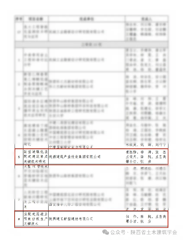 近日,陜西省土木建筑學(xué)會公示了“第九屆(2024年)陜西省土木建筑科技進(jìn)步獎評選結(jié)果公示”名單,陜西建筑產(chǎn)業(yè)投資及所屬企業(yè)新型建材公司完成的《基于濕陷性黃土地質(zhì)的綜合管廊快速建造關(guān)鍵技術(shù)研究與應(yīng)用》榮獲二等獎,《裝配式混凝土預(yù)制掛板生產(chǎn)關(guān)鍵技術(shù)》《新型城鎮(zhèn)化裝配式建筑集成關(guān)鍵技術(shù)研究》榮獲三等獎。