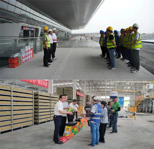 集團(tuán)副總經(jīng)理劉海生赴機(jī)場供貨項目一線,與華山路橋集團(tuán)共同開展送清涼慰問活動。同時,走進(jìn)免拆保溫模板基地開展慰問活動,親切地詢問了職工們工作與生活情況,叮囑他們高溫作業(yè)要注意勞逸結(jié)合,做好防暑降溫工作,在保證安全生產(chǎn)的同時做好自我防護(hù),確保以更好的狀態(tài)投入到工作中。