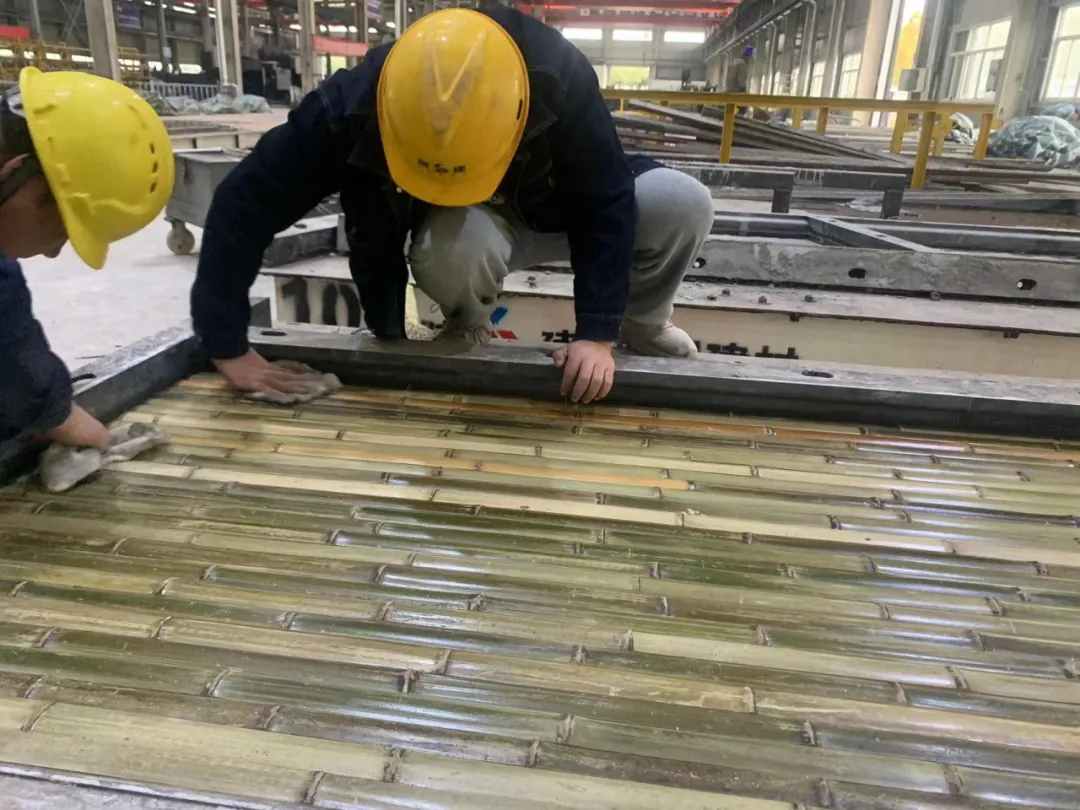 在此次QC活動中,小組成員運用科學(xué)的測算和調(diào)查方法,逐一分析竹紋掛板一次合格率,針對“粘模、掉角”這兩項癥結(jié),經(jīng)過運用BIM技術(shù)改進翻轉(zhuǎn)工裝,多次試驗脫膜劑材料等一系列改進措施,將成品一次平均合格率由94.72%提升至99.38%。隨后小組成員將活動中的有效對策進行整理、歸檔,匯總編制形成《預(yù)制竹紋掛板生產(chǎn)作業(yè)指導(dǎo)書》全面運用到生產(chǎn)實踐中,全面提高竹紋掛板一次合格率。