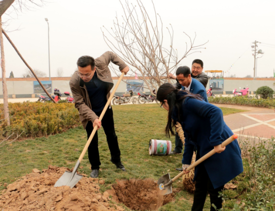 在陜建(西咸新區(qū))建筑產(chǎn)業(yè)基地,參加植樹的領(lǐng)導(dǎo)和職工個個熱情高漲、干勁十足,兩個人一組,扶直樹苗、揮鍬培土、踩實壓緊,大家配合得很默契,整個勞動場面繁忙而有序。栽下一棵棵樹苗,種下一份份希望。經(jīng)過一下午的緊張奮戰(zhàn),一排排整齊的苗木為初春增添了生機,為美麗的基地再添新綠。
