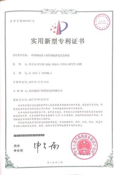 近日,由集團(tuán)公司申請(qǐng)的實(shí)用新型專利《一種預(yù)制混凝土構(gòu)件鋼筋灌漿連接構(gòu)造》,經(jīng)中華人民共和國(guó)國(guó)家知識(shí)產(chǎn)權(quán)局嚴(yán)格審查,已順利通過(guò)并喜獲授權(quán)。