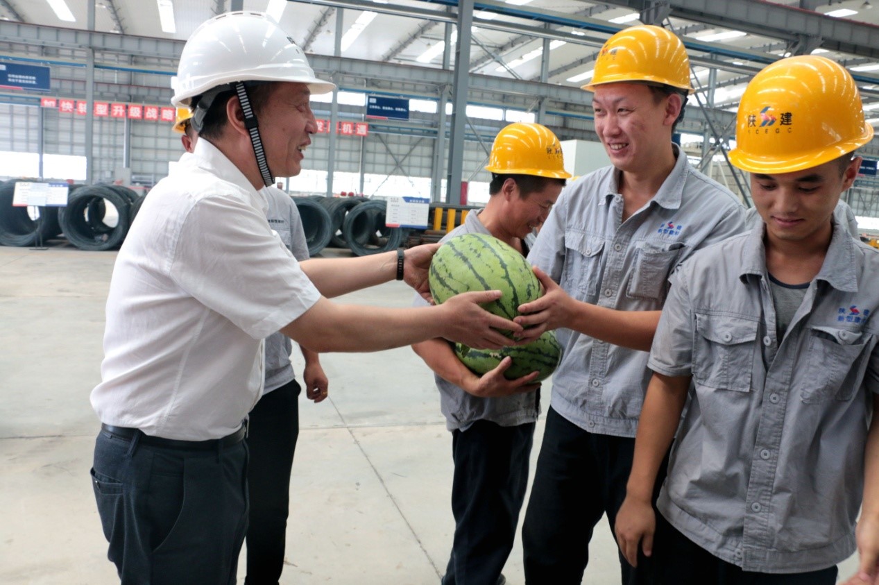 夏日炎炎,驕陽似火,連日來,氣溫節(jié)節(jié)攀升。為了保障廣大職工和農(nóng)民工的身體健康,推進生產(chǎn)經(jīng)營工作的順利進行,集團公司總經(jīng)理張朝輝、工會主席王拯民一行于7月13日—7月18日為奮戰(zhàn)在一線的職工送去防暑降溫慰問品,讓一線職工在炎炎夏日感受到組織的關(guān)懷與溫暖。